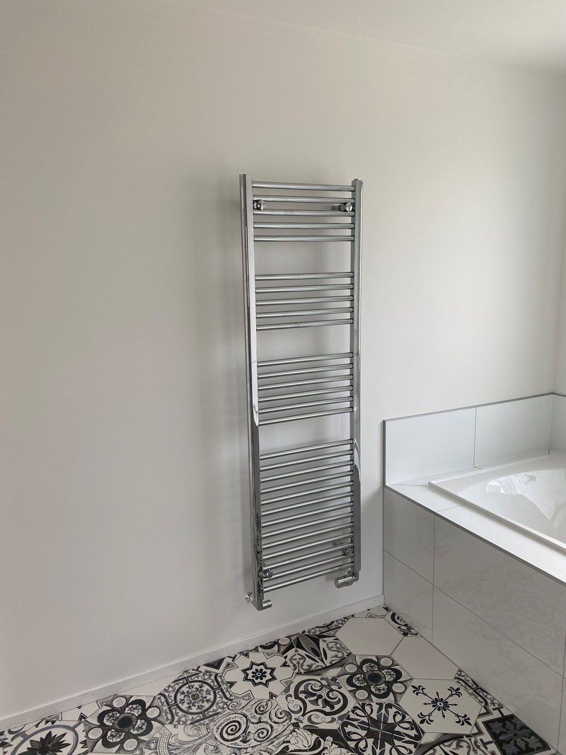 These come in dark grey and white. The flat rung profile provides great heating and towel drying capabilities.