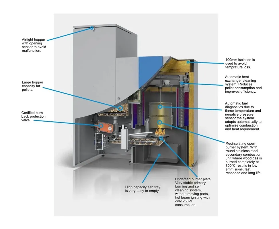 For a central heating option with low environmental impact the pellet boiler brings you both high performance and ease of use.